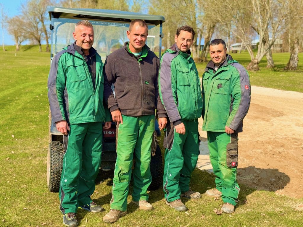 Mit großem Engagement und viel Liebe zum Detail sorgt unser Greenkeeping-Team mit Head-Greenkeeper Kalli Förderer, Daniel Badowski, Dari Rüchel, Martin Andreev und Roland Armbruster, dass Sie bei jeder Runde optimale Spielbedingungen genießen können. Ihr Einsatz macht den Unterschied – Tag für Tag.